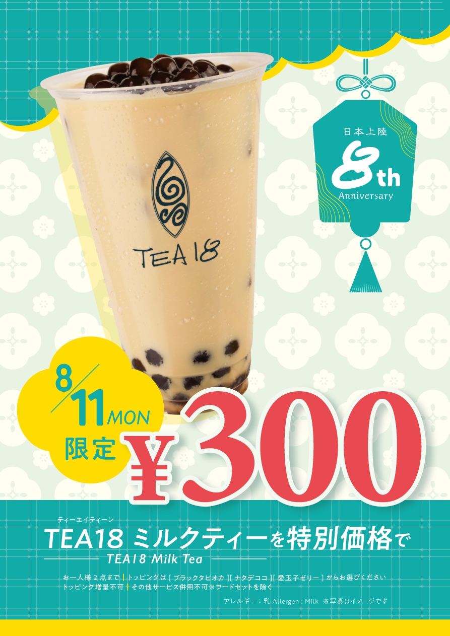 今年でTEA18は日本上陸8周年を迎えます!