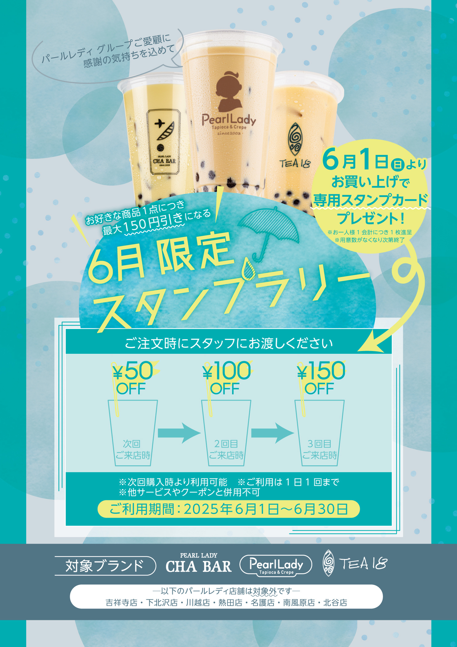 ■対象店舗:TEA18全店・パールレディ全店(下記の店舗は対象外)・CHABAR全店