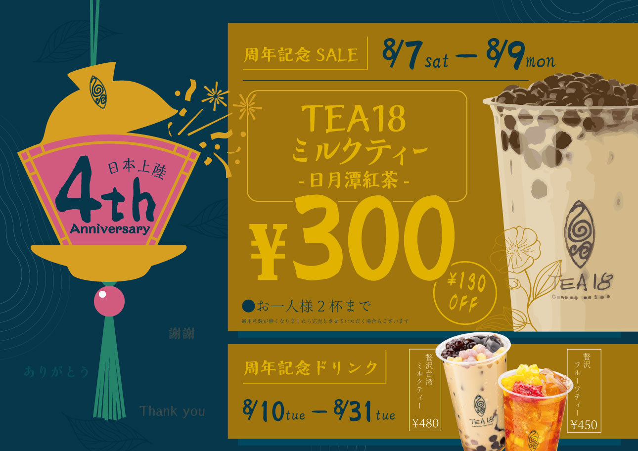 この度、TEA18は台湾から日本へ上陸して4年目を迎えることができました。