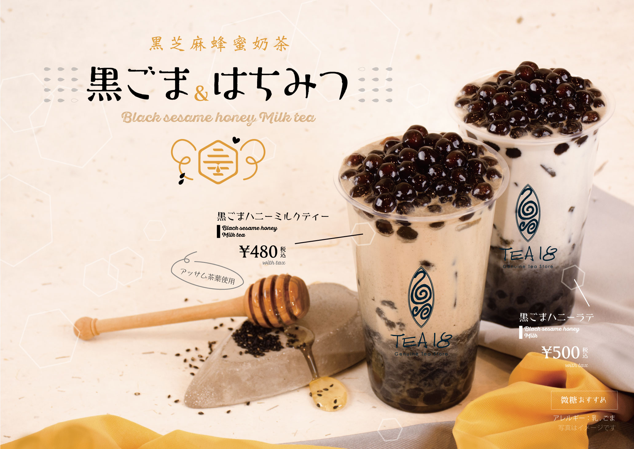 黒ごまハニーミルクティー 各480円(税込)