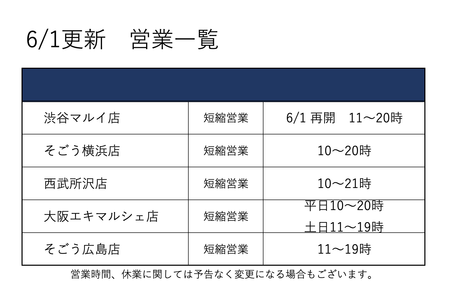 営業時間が異なる場合がございますことを何卒ご了承お願い申し上げます。