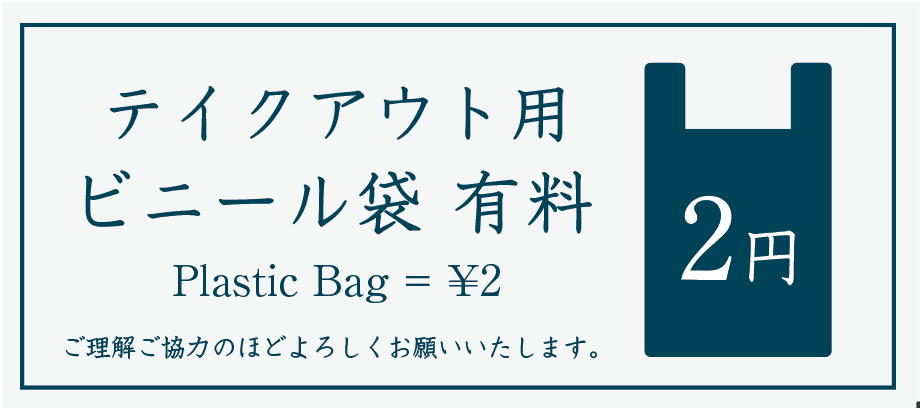 持ち帰り用のビニール袋が有料(2円)になります。