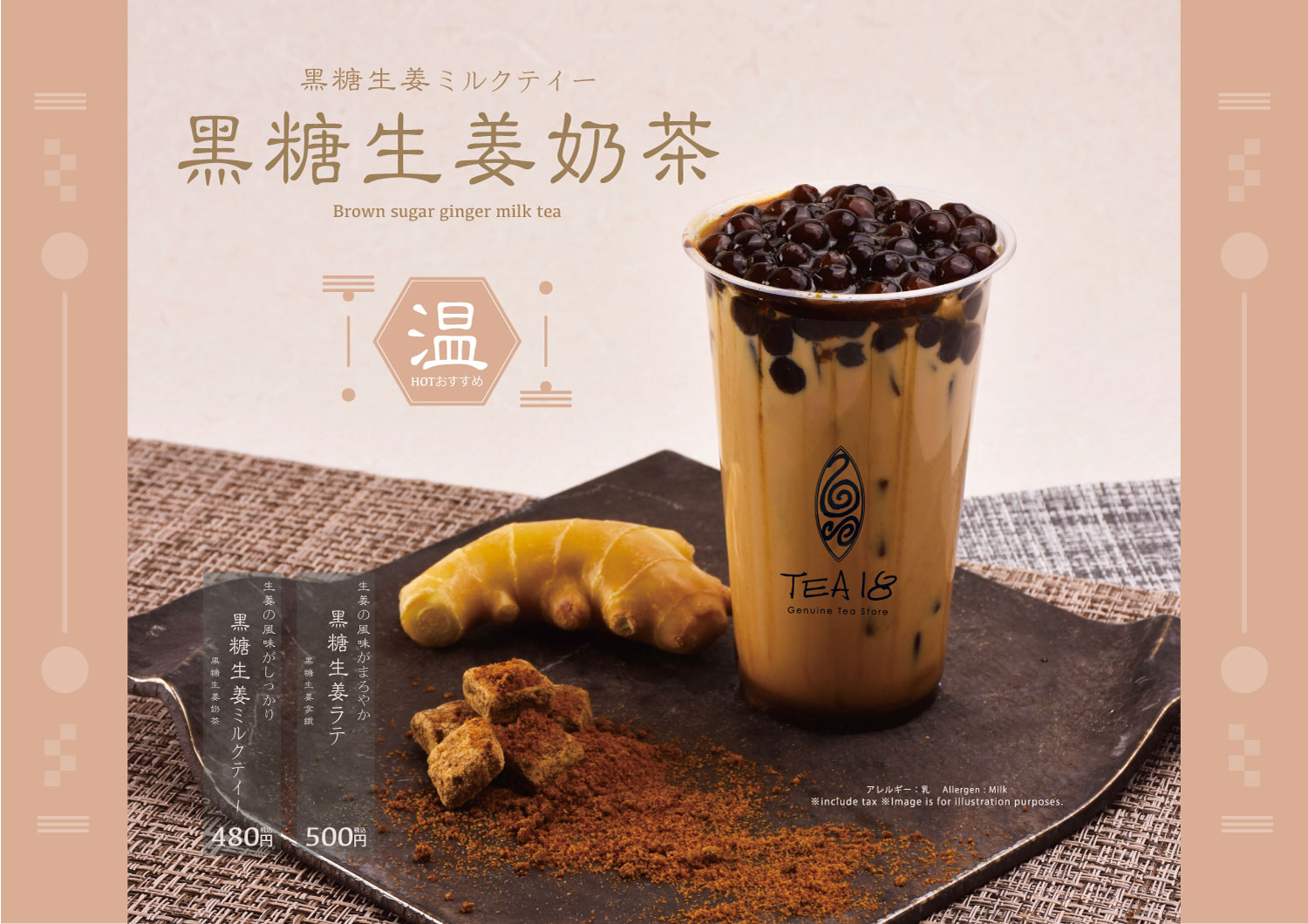 黑糖生姜ミルクティー 各480円(税込)
